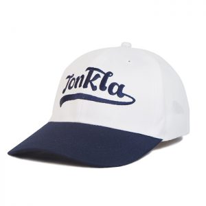 แบบตัวอย่างหมวกแก๊ปสีทูโทน 2 สี เป็นหมวกแก๊ปที่มีชิ้นหน้าหมวก2ชิ้นเป็นสีขาว และส่วนตัวหมวกอื่นๆเป็นสีดำล้วน พร้อมทั้งรูระบายอากาศที่เป็นสีดำ ทั้งหมดอีกด้วย สำหรับงานปักโลโก้นั้น ลูกค้าได้เลือกตำแหน่งชิ้นหน้าหมวกชิ้นขวามือ (ตามภาพ) เป็นงานปักรูปเต่าน่ารัก